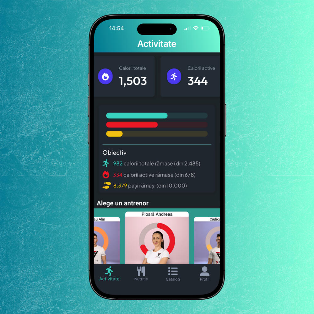 După crearea contului aplicația îți va stabili obiectivele pentru nutriție și activitate în funcție de datele oferite de tine.