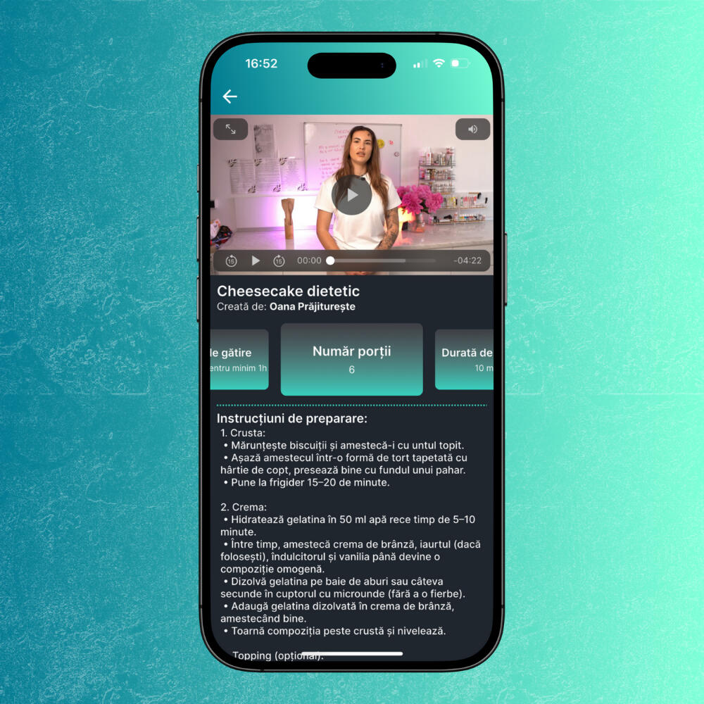 Gătește sănătos cu rețetele din aplicație în care vei găsi toate detaliile necesare pentru preparare.